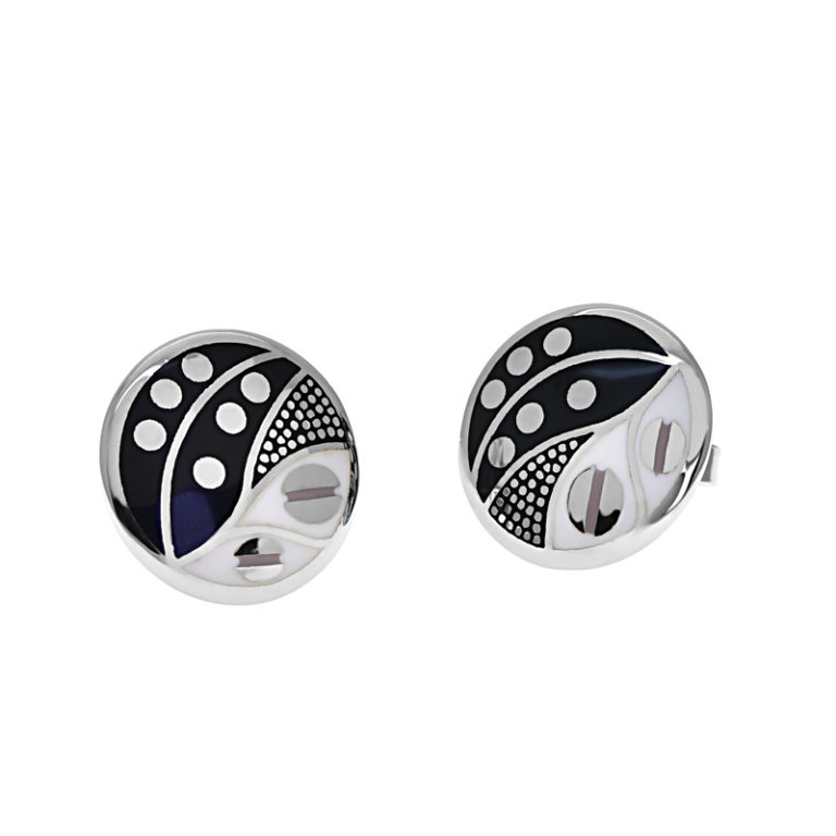Fekete fehér betétes ezüst fülbevaló