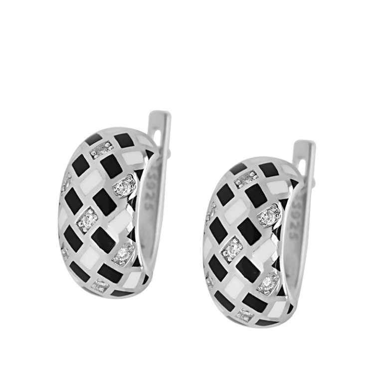 Fekete-fehér betétes fehér köves ezüst fülbevaló