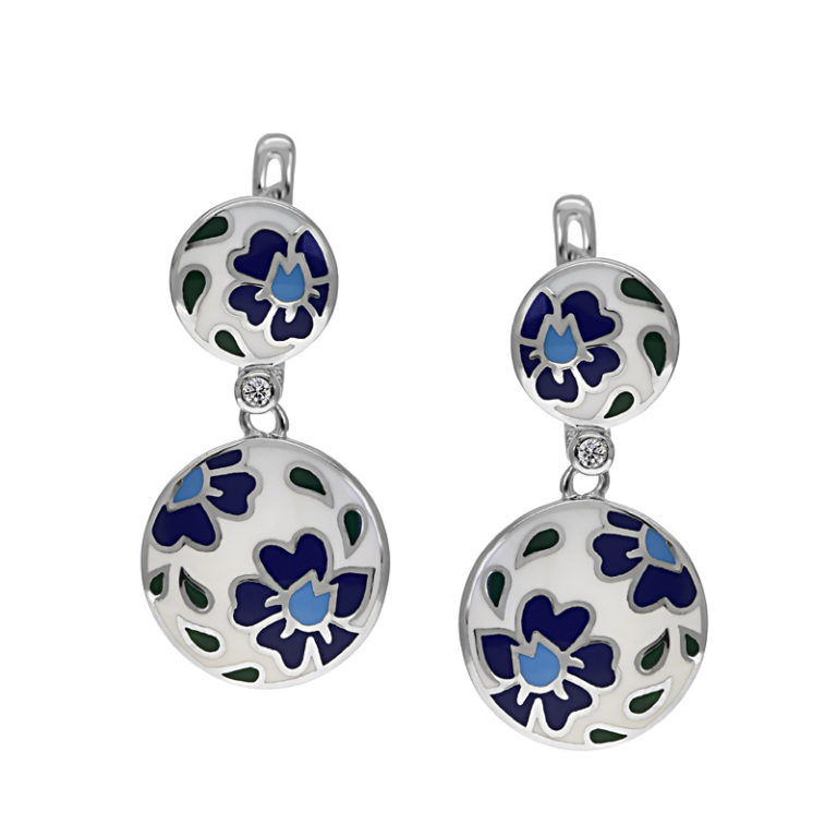 Kék virágos ezüst fülbevaló