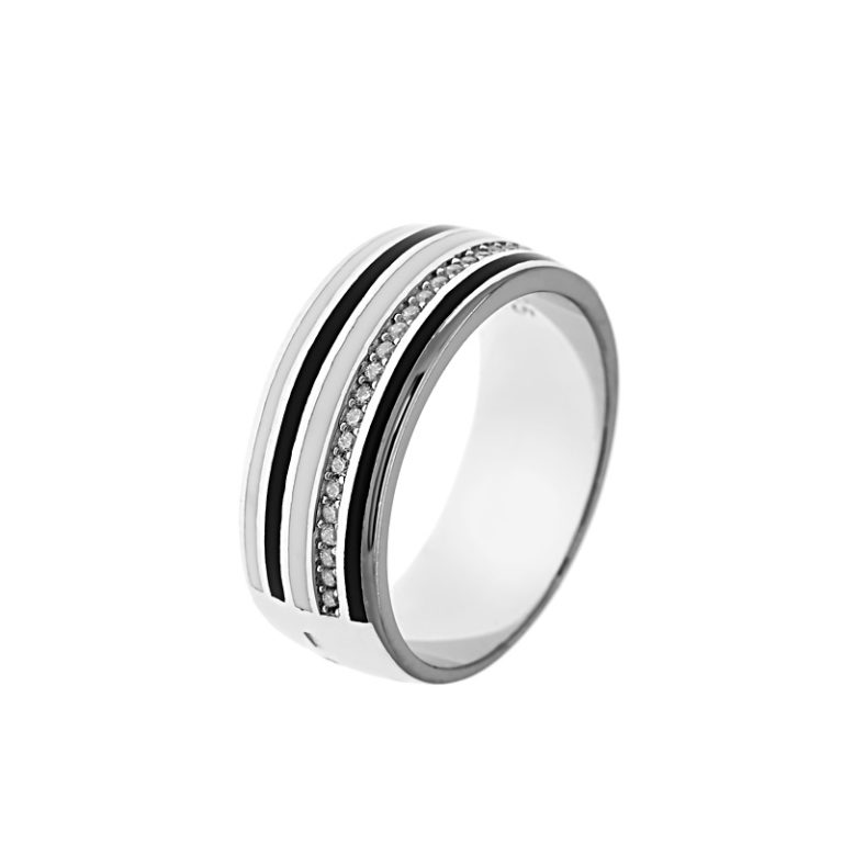 Fekete fehér betétes köves ezüst gyűrű