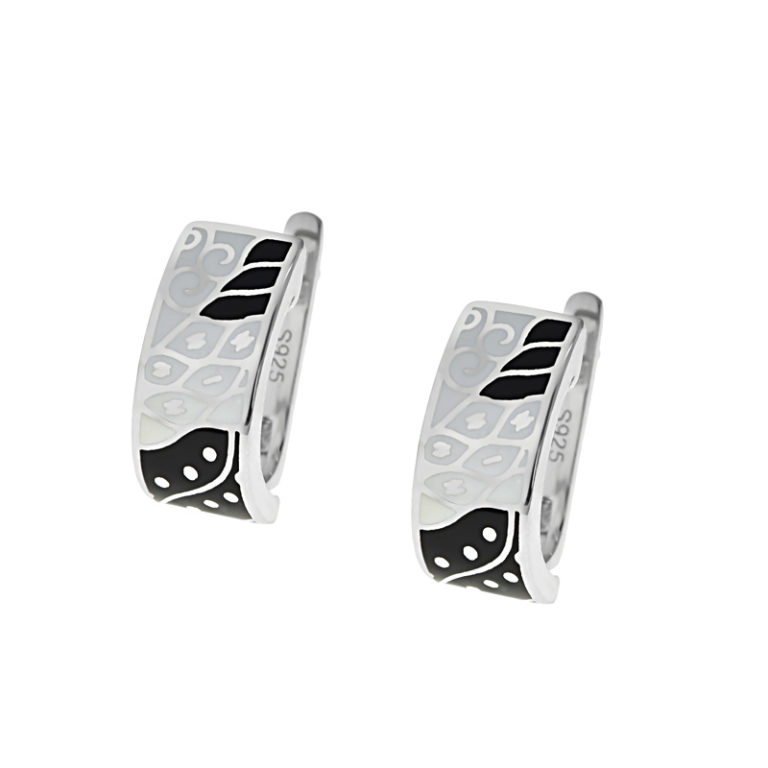 Fekete fehér betétes ezüst fülbevaló