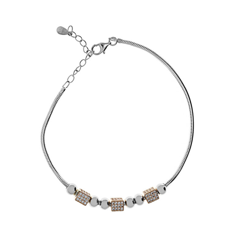 Fehér köves rosé betétes ezüst karkötő