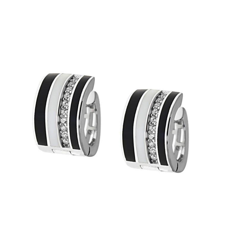 Fekete fehér betétes köves ezüst fülbevaló