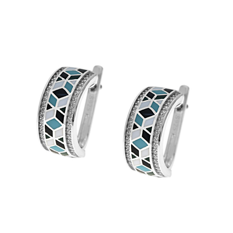 Színes betétes köves ezüst fülbevaló