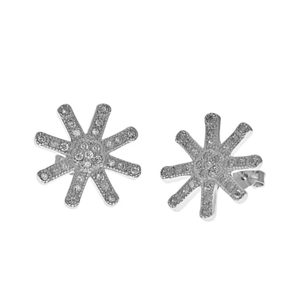 Fehér köves virág ezüst fülbevaló