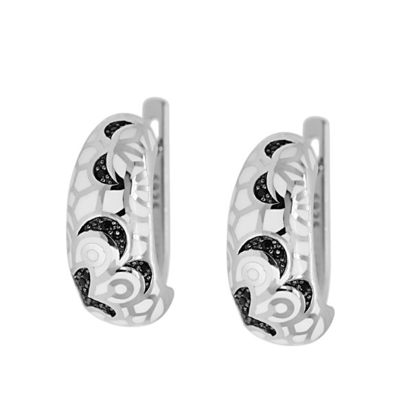 Fekete fehér betétes köves ezüst fülbevaló