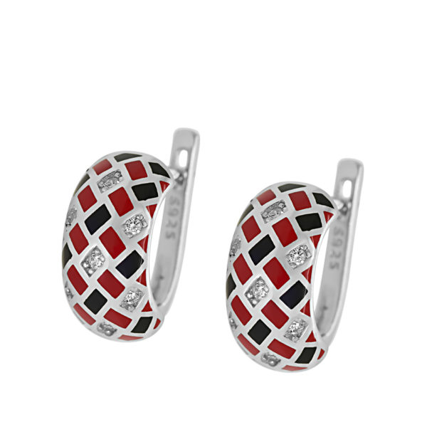 Fekete piros betétes fehér köves ezüst fülbevaló