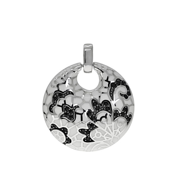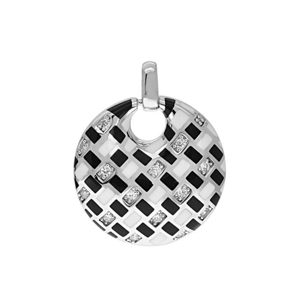 Fekete-fehér betétes fehér köves ezüst medál