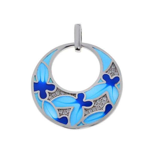 Színes virágos köves ezüst medál