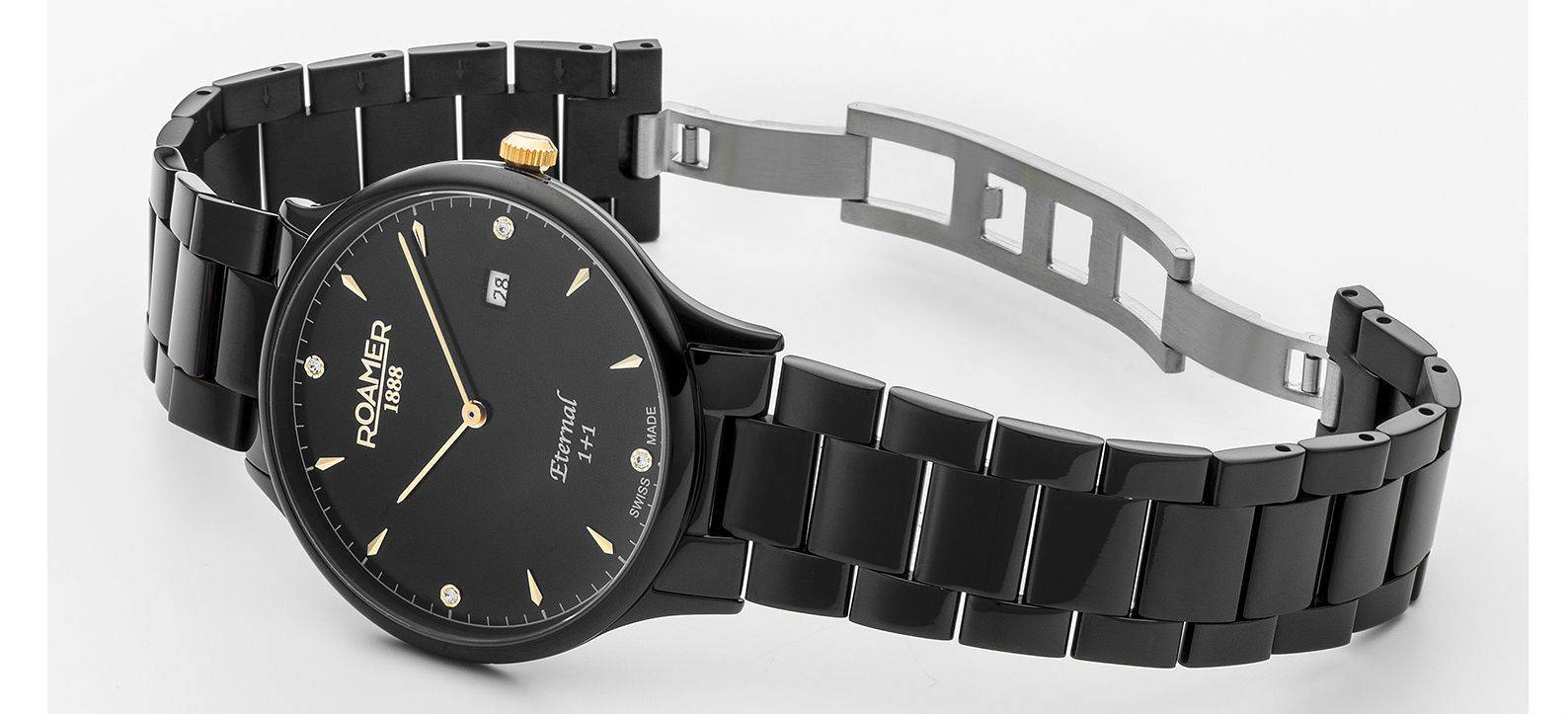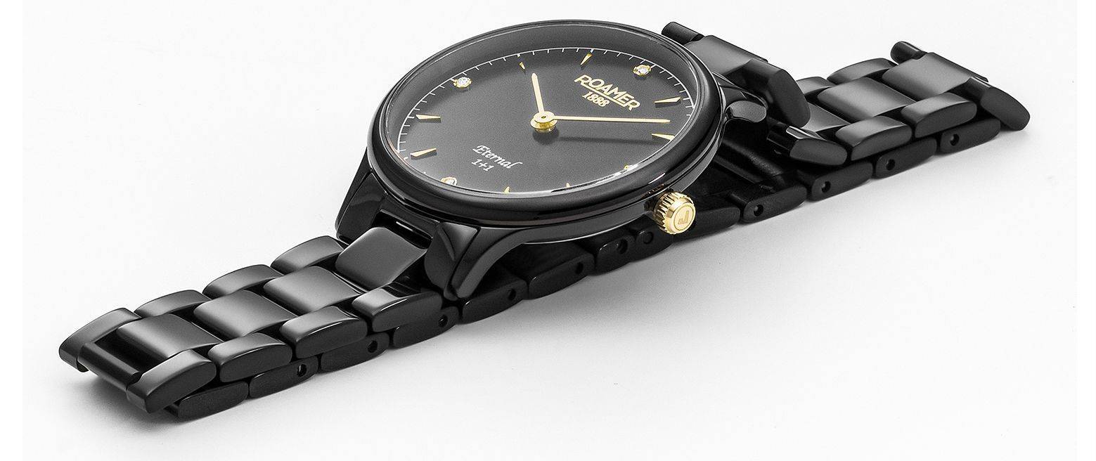 A Roamer Eternal ezen „all-black”, azaz teljesen fekete verziója tökéletes választás azoknak a hölgyeknek, akik egy modern, karakteres, mégis elegáns svájci időmérőt keresnek. A fekete acél indusztriális vonalvezetése és a kristályok ragyogása egy különleges „sötét eleganciát” teremt, így az óra egyaránt kiváló kiegészítője lehet egy határozott irodai szettnek vagy akár egy alkalmi, esti ruhának is.