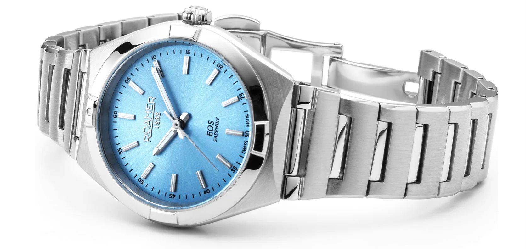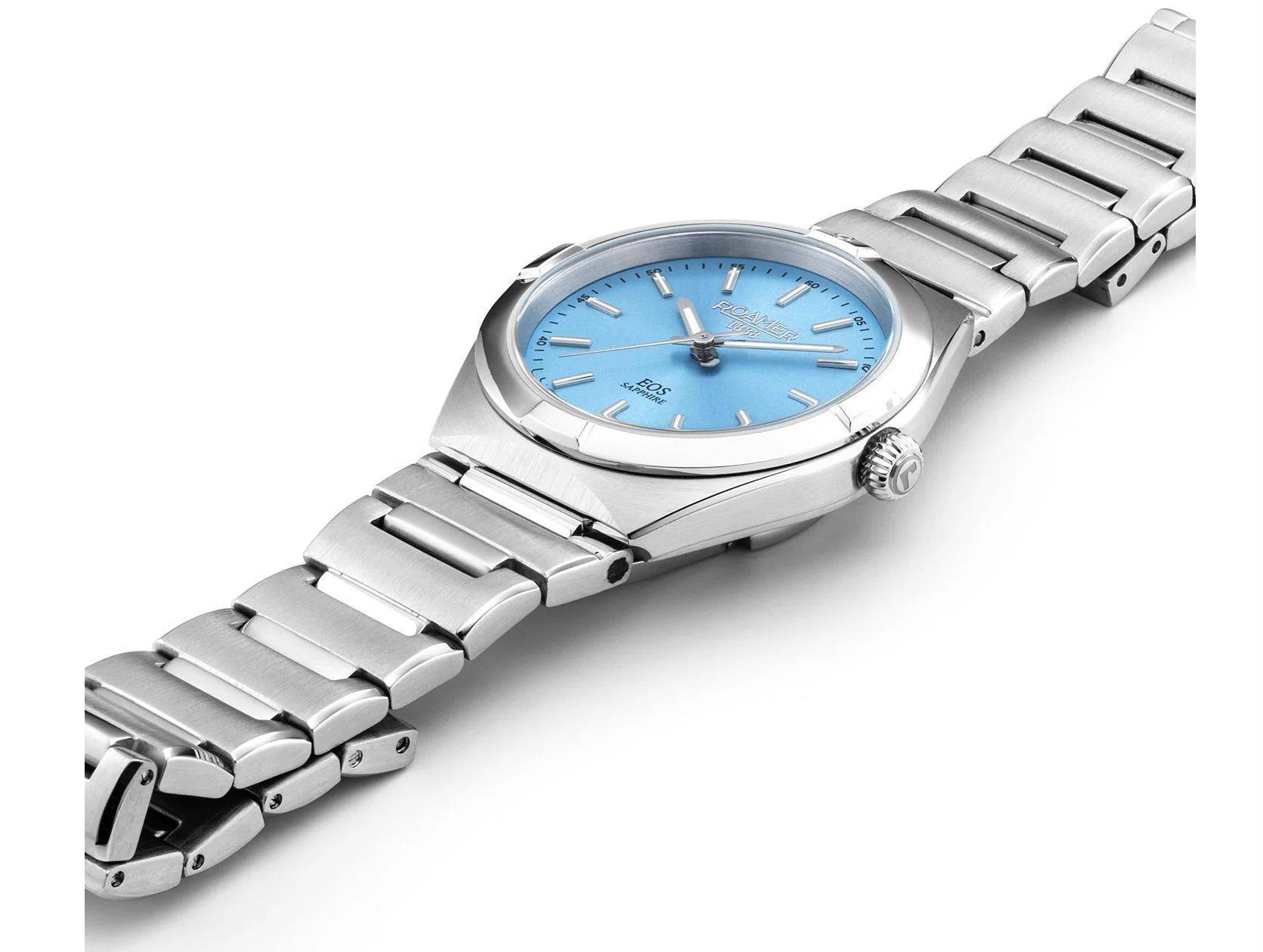 A Roamer ezen modellje egy rendkívül finom és elegáns női karóra. A letisztult ezüstszínű tokozás és a visszafogott, de mégis különleges világoskék számlap kombinációja időtlen megjelenést kölcsönöz neki. Tökéletes választás a mindennapi irodai viselethez, de akár egy alkalmi szett kiegészítőjeként is tökéletesen megállja a helyét.